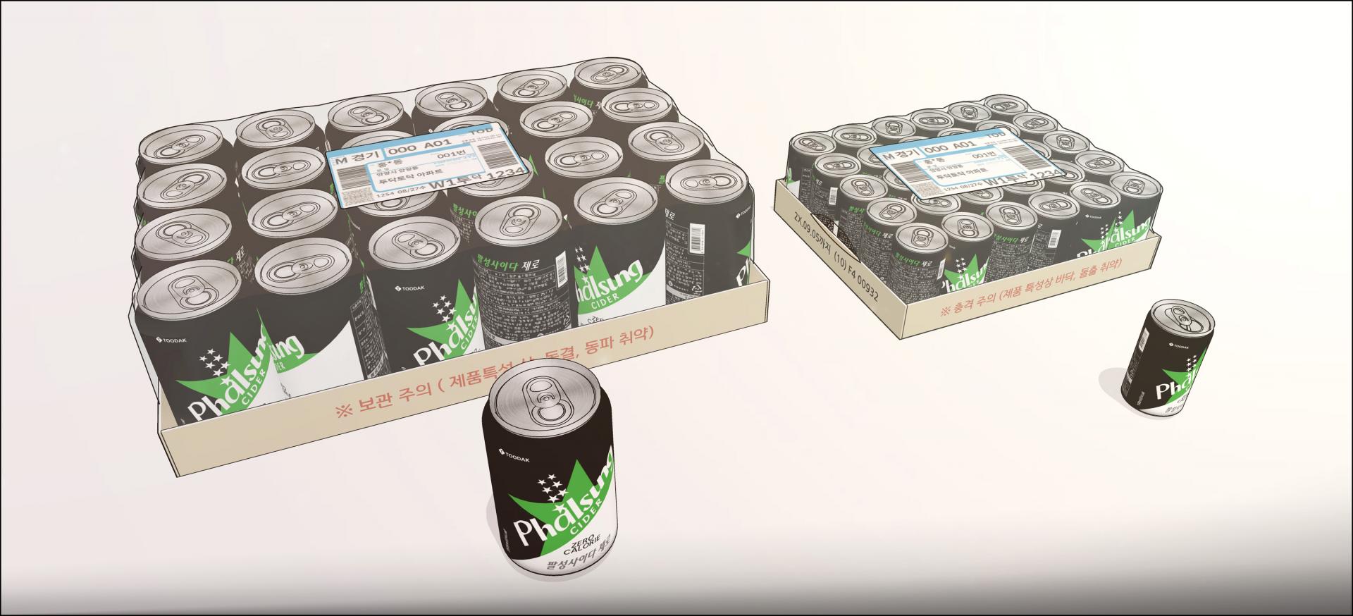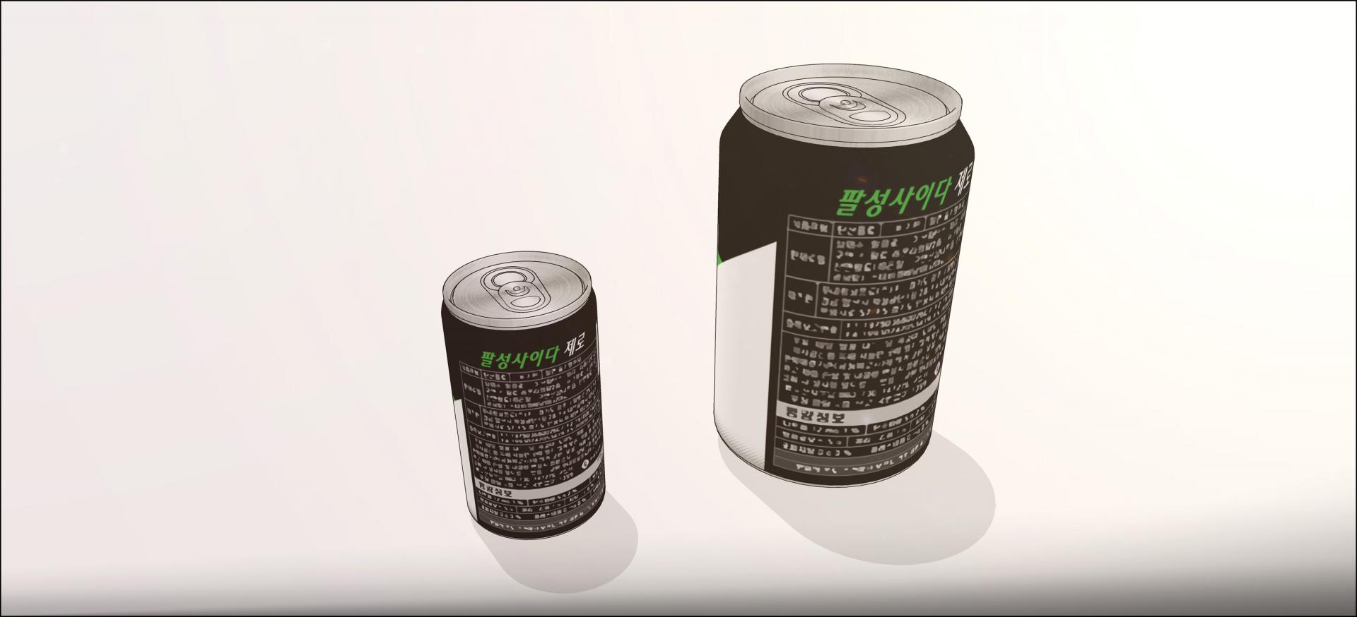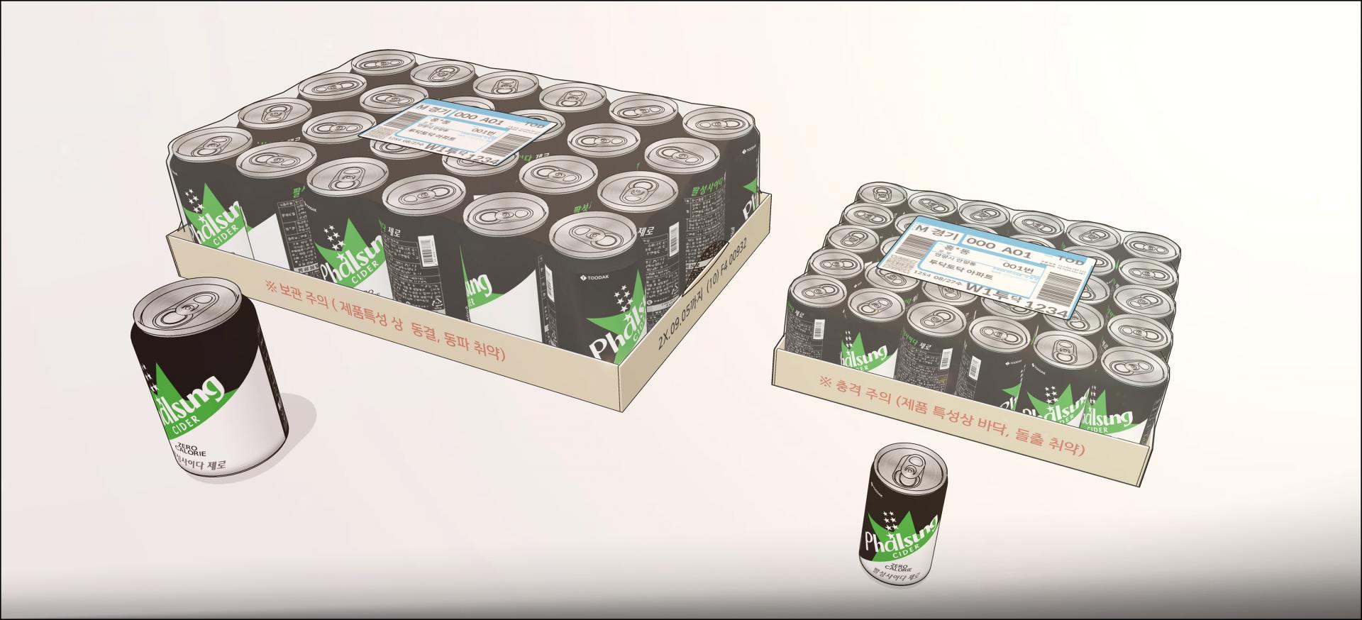 크기가 다른 캔콜라 2종과 배달포장된 박스 2종 입니다.