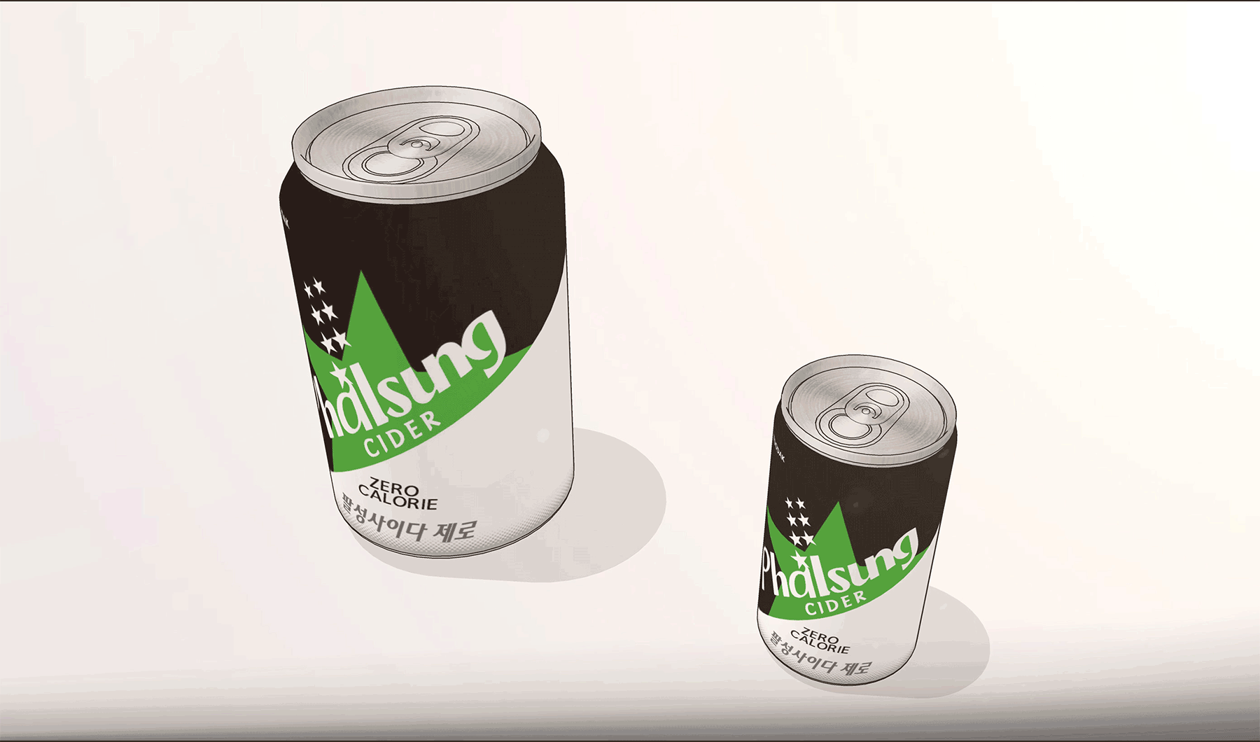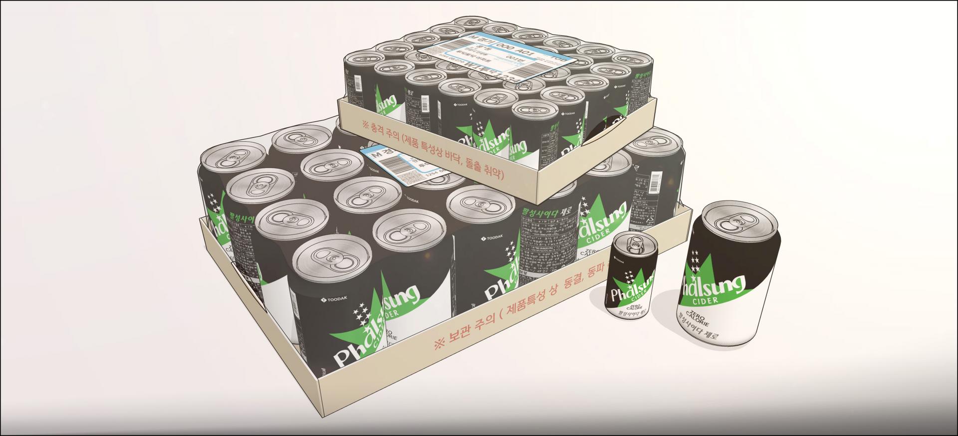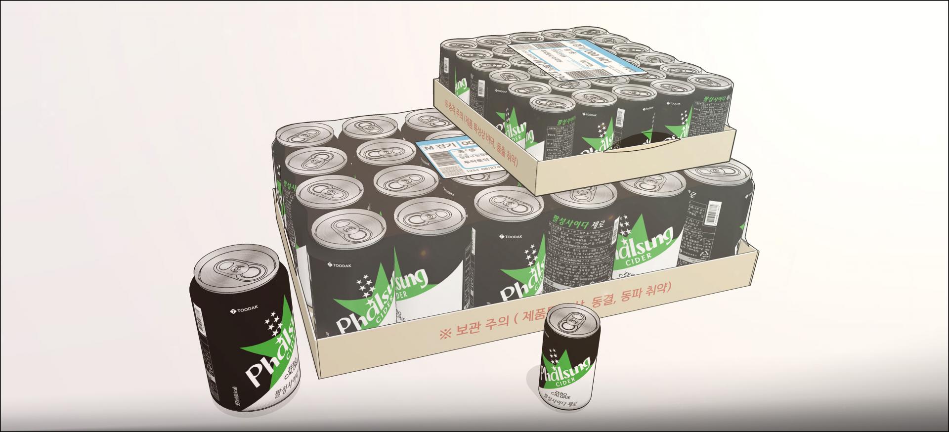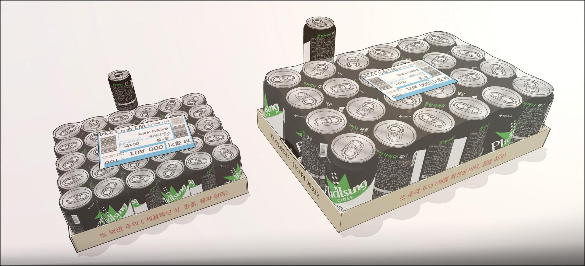 크기가 다른 캔콜라 2종과 배달포장된 박스 2종 입니다.